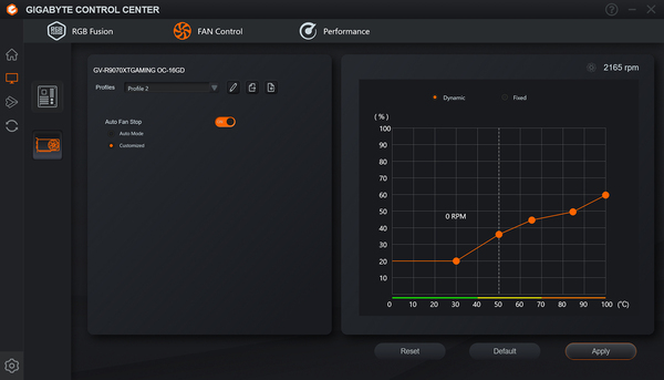 GPUクーラーファンから30cmの位置で計測しているので、PCケースに組み込み、PCを設置する場所などで感じかたは変わってくるが、参考までにファン回転数をカスタマイズしてみた。