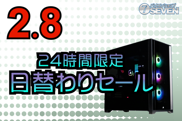 セブンアールジャパンは、運営するパソコンショップSEVENで、2月8日に24時間限定セールを実施する。このセールでは、最新のゲーミングPCやデスクトップPCが最大140,000円の大幅割引で販売される。