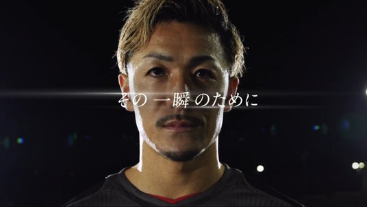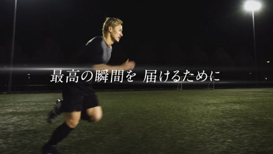本CMは、静かな決意を胸に、モノクロームの世界にたたずむ前田選手から幕を開けます。ゴールを見据えると、一転して光と色彩を帯びた現実世界に戻り、ボールに向かって蹴り出します。そして、最高の瞬間を届けるために、これまで走り続けてきた軌跡(松本、水戸、横浜、グラスゴー)が映し出され、その俊足から豪快なシュートを決める前田選手。歓声が沸き上がり、前田選手直筆の「感動を止めるな。」のメッセージとともに締めくくられます。