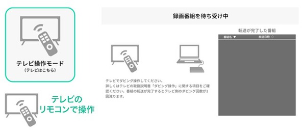 番組ダビングに対応するテレビはDTCP-IP対応でアップロードムーブに対応する機種限定で、シャープの一部機種と東芝、パナソニック、TVS REGZAの製品。ドライブ購入前に必ず対応機種を確認しよう。