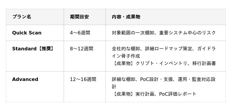 本サービスは、当協会の厳格な基準に基づく日本初の「耐量子セキュリティ認証マーク」付与を含め、暗号資産の棚卸・評価から実装支援、教育・ガイドライン策定まで、企業の重要資産を「将来の解読」から守るための包括的な移行支援を提供いたします。
