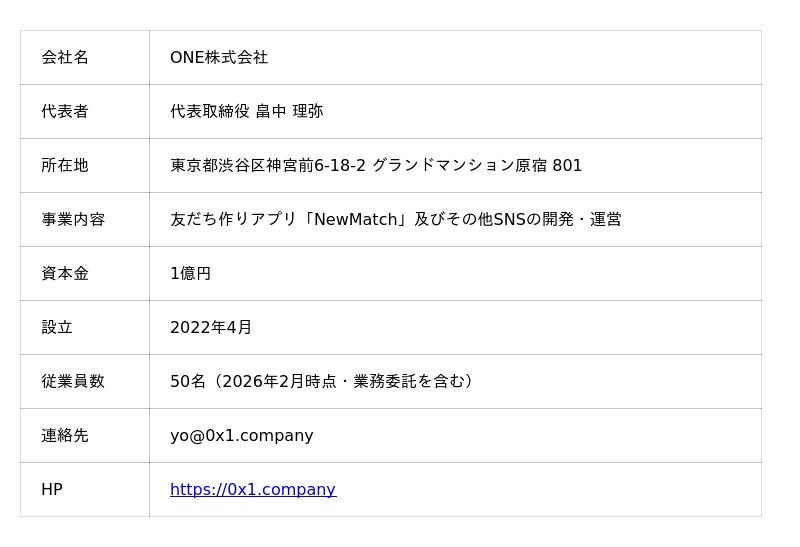 「友だちから始まる新しい出会い」をテーマにしたSNS『NewMatch(ニューマッチ)』を運営するONE株式会社(本社:東京都渋谷区、代表取締役:畠中理弥、以下:ONE)は、NewMatchのオウンドメディア(TikTok/Instagram)の総再生回数が10億回を突破したことを発表いたします。NewMatchは2025年1月のリリース以降、SNSでのバズを起点に新規ユーザーが大幅に拡大し、現在では18~24歳の若年層を中心に数十万人が利用するサービスへと成長しています。