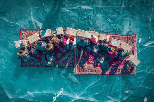 極寒の冬の中、凍結した湖の上で勉強する子どもたちの姿を捉えています。元『Chinese National Geography』主任写真家の姜平(Jiang Ping)審査員は、暖色と寒色のコントラストを称賛しました。同時に、北京映画アカデミー・映像メディア&通信学院の朱炯(Zhu Jiong)教授は、この「自然の教室」を「信じられないほど素晴らしい」と評しました。
