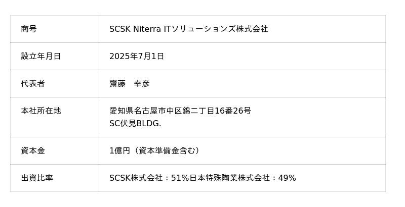 SCSK株式会社(本社:東京都江東区、代表取締役 執行役員 社長:當麻 隆昭、以下 SCSK)とNiterraグループ 日本特殊陶業株式会社(本社:名古屋市東区、社長:川合 尊、以下 日本特殊陶業)の合弁会社である、SCSK Niterra ITソリューションズ株式会社(以下SNITS)は2026年1月より事業を開始しました。