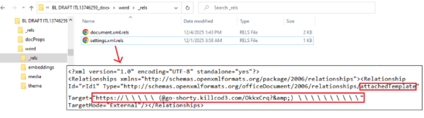 テンプレートファイルのURLは「Target」属性で指定されています(hxxps://go-shorty[.]killcod3[.]com/OkkxCrq)。