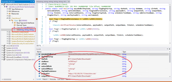 .NETモジュール(DLL)のアセンブリ名はMicrosoft.Win32.TaskSchedulerですが、これは被害者とリサーチャーの両方を欺くためにTaskSchedulerに関連する正規のシステムモジュールを装った名前です。