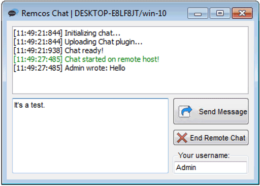 本カテゴリには、Chat、MessageBox、およびAudio Player機能が含まれます。これらの機能は、被害者と攻撃者の間での双方向コミュニケーションを提供します。図20は、C2サーバーでChat機能が使用されている様子を示しています。