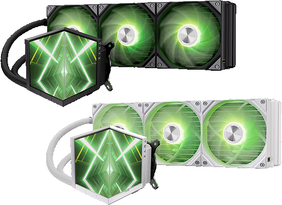 「STAGE 360シリーズ」は、オールインワン簡易水冷CPUクーラーで、ポンプヘッドには4インチLCDが2枚搭載され、ミラー仕様のベースプレートとの組み合わせにより、ユーザーの好みに応じたカスタマイズが可能だ。TDP 280Wに対応したASETEK製の高性能ポンプヘッドと、120mmのARGBトリプルファンを採用しており、高い冷却能力を発揮する。