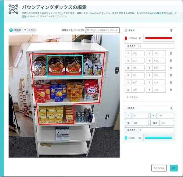 ソラコムは2月5日、「SORACOM Flux」に関する新たな機能の提供を開始することを発表した。新機能では、AIによるカメラ映像分析をより柔軟に指定できる「バウンディングボックスアクション」を拡張し、多角形の枠線設定に対応した。