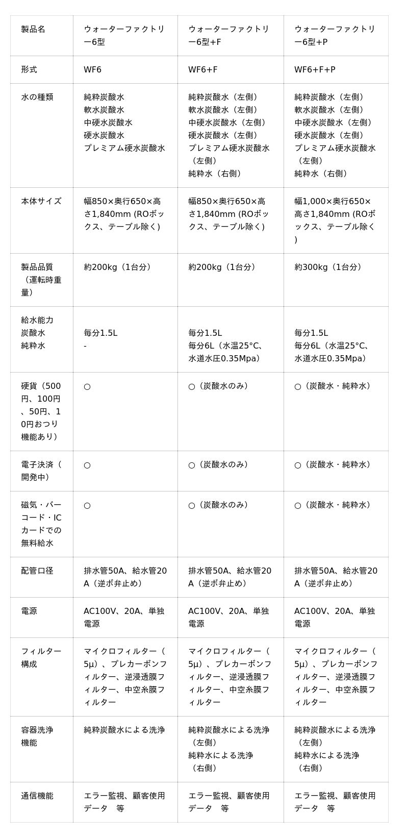新・ミネラル強炭酸水自販機「WF6型シリーズ」について