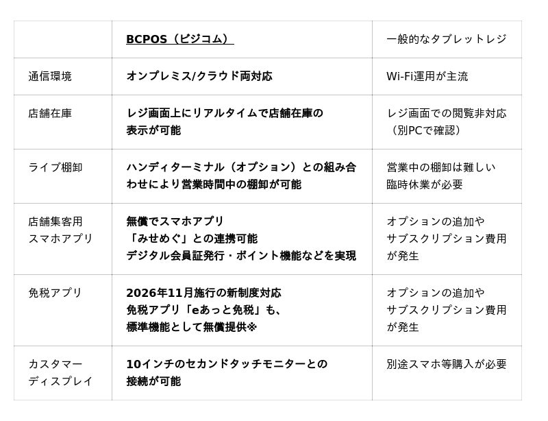 ※「BCPOS」のソフトウェア利用料(買い切りまたはサブスクリプション)が別途必要になります。