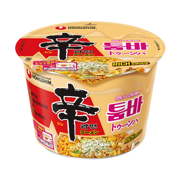 「辛ラーメン トゥーンバ」は、辛ラーメンをクリームパスタ風にアレンジするレシピを製品化した汁なし麺。濃厚なクリームパスタのようなソースにもちもちの麺が絡み、さらに「うまからっ!」なアクセントを加えた、絶妙な組み合わせを特徴とする。