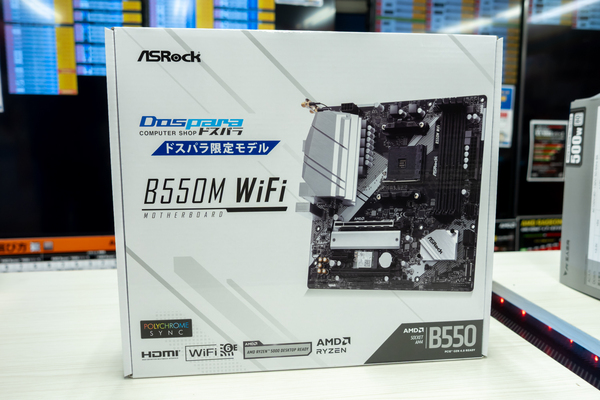 マザーボードは、ASRockの「B550M WiFiドスパラ限定モデル」だ。Socket AM4なのでプラットフォームは古くなるが、無線LANは高速な6GHz帯を使用できるWiFi 6E 無線LANを標準で搭載している。子供部屋など、有線LANを通しづらい環境でも高速な通信が可能だ。