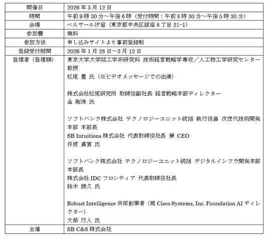 「新しいテクノロジーをいち早く、より使いやすい仕組みやかたちにして全国にお届けする」というソフトバンク創業以来の役割を担うSB C&S株式会社(以下「SB C&S」)は、最新のAI(人工知能)ソリューションを一堂に集めた展示・体験型イベント「AI Frontline(エーアイ フロントライン)」(以下「本イベント」)を2026年3月12日に東京で開催します。