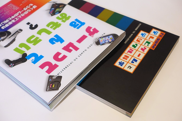 私が直接かかわったゲーム本2冊。2004年に国立科学博物館で開催された「テレビゲームとデジタル科学展」の図録と2016年日本科学未来館で内田まほろさんと一緒に企画監修を担当させてもらった『GAME ON ~ゲームってなんでおもしろい?』の本(会場で図録的に販売したものとISBNがついて書店で販売したものがあった)。