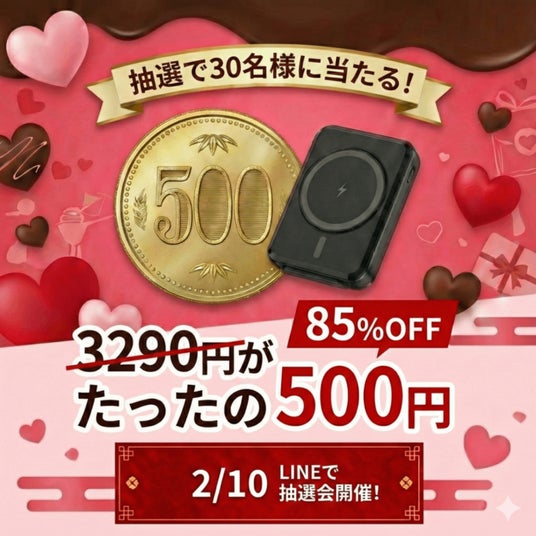 【バレンタイン限定キャンペーン】抽選で30名様に10,000mAhモバイルバッテリーを500円でゲットできるチャンス!