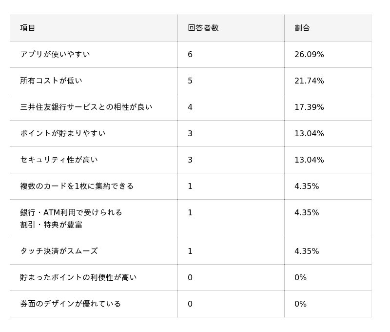 - Oliveフレキシブルペイを利用して感じた良い点TOP3は「アプリが使いやすい」「所有コストが低い」「三井住友銀行サービスとの相性が良い」。