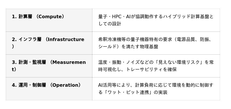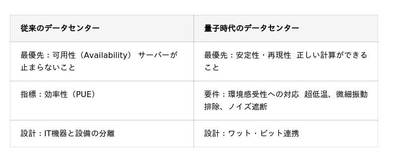 2026年、量子技術は研究段階を脱し、実産業・商用フェーズへと移行しました。それに伴い、システムの安定稼働は避けて通れない命題となっています。 しかし、従来のデータセンターはサーバーの「可用性(止まらないこと)」に特化しており、量子計算機が本来備えるべき「計算の安定性・再現性」を保証する設計には至っていません。