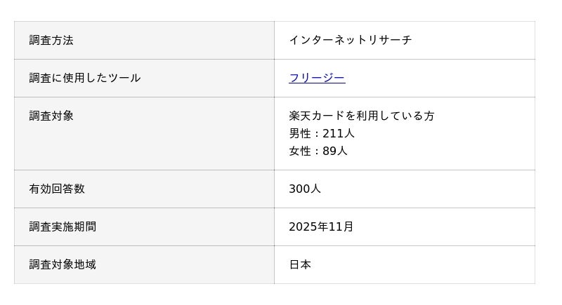 ココモーラでは、ユーザーの生の声を調査するため「楽天カードに関するアンケート調査」を行いました。アンケート調査の概要は以下の通りです。