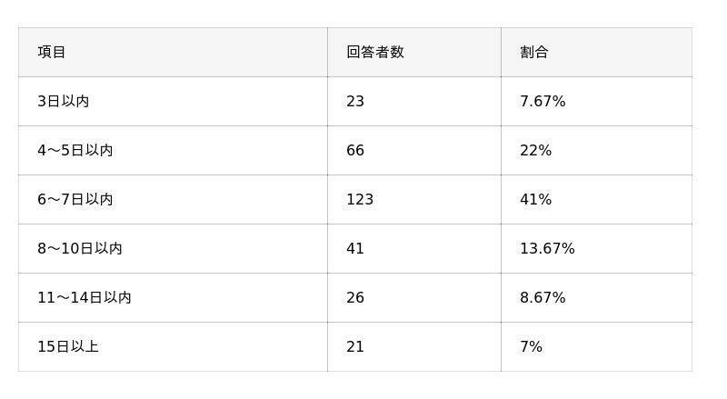 - 楽天カードの発行スピードは、41%が「6~7日以内」と回答。