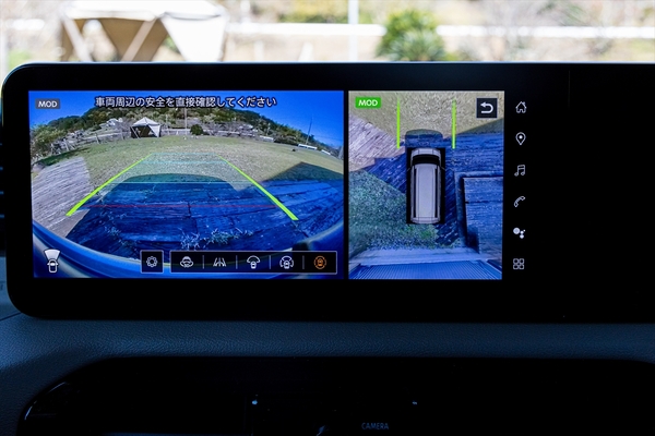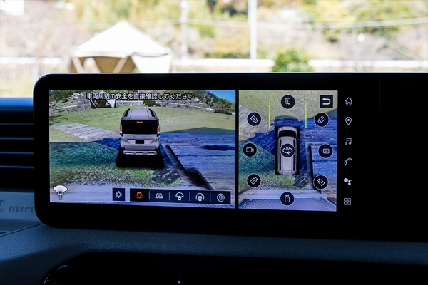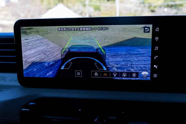 驚いたのはバックカメラの映像。前後左右上下と、あらゆる方向が確認できます。特に前方の床下付近まで見られるカメラには驚き。悪路を走る際に便利そうです。