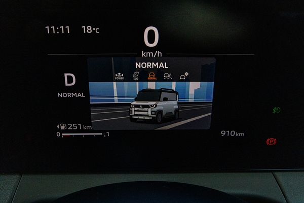 メーターパネルはフルカラーで、エンジンをかけるとデリ丸。の目がパチクリ。最初「女性ウケを考えているのかな」と思ったのですが、意外にもコワモテのオジサマたち(=自動車評論家)にも好評のよう。