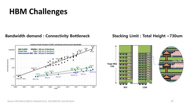 特にHBM3以降(3/3E/4/4E)では信号速度が高速化する分発熱量も多いので、これをなんとかしないと発熱を抑制する(=信号速度を低めに抑える)必要性が出てしまい、好ましくない。