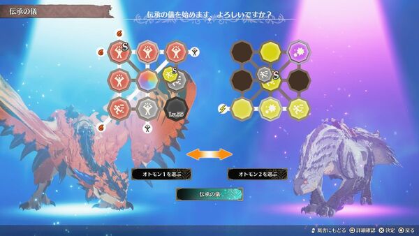 また、前作までと違って本作では「伝承の儀」でオトモンが消えなくなった。何かを消費することなく絆遺伝子を交換できるようになったので、自由度が増した形だ。