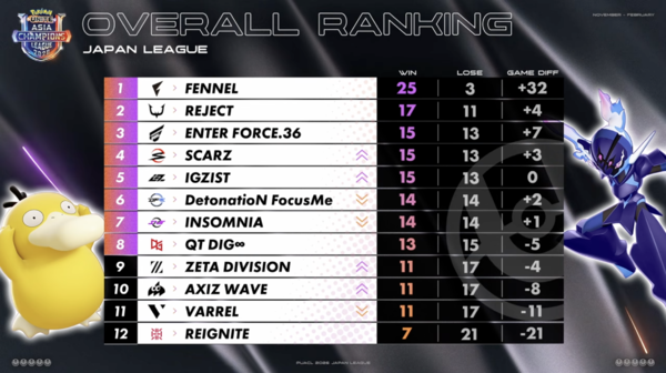 なお、1位のFENNELと2位のREJECTはプレイオフのトーナメント表でベスト4以上になることが確定しているため、オフライン決勝「PUACL2026 FINALS」進出も決定となります。