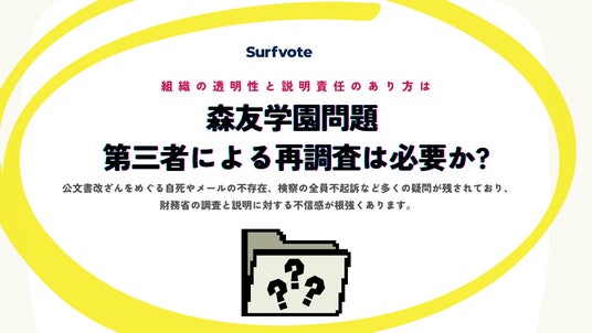 問題発覚から約7年が経過した今、国民としてどう考えるかをSurfvoteで意見を募集しています。