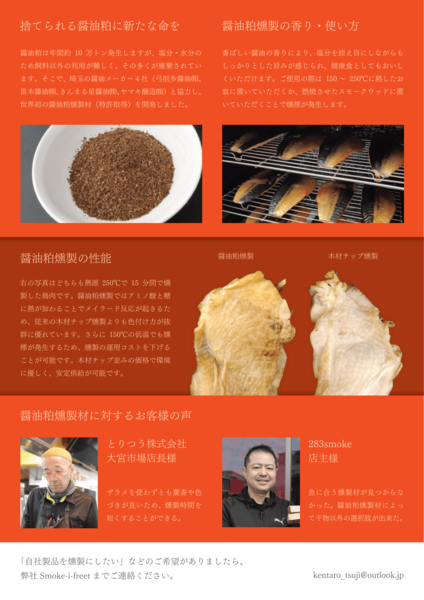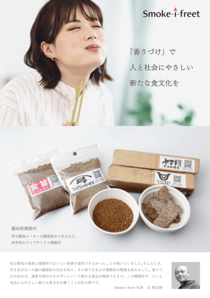 【3/3展示】廃棄されていた醤油粕を活用したアップサイクル燻製材を開発・提供、Smoke-i-freet