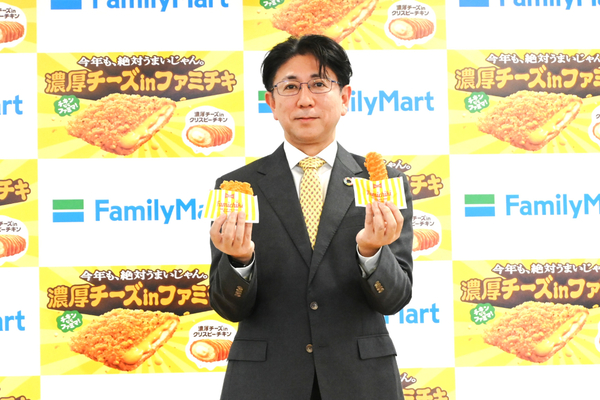 今年は、昨年同様に“ファミチキ史上最大量のチーズ”を使用した点はそのままに、熟成チェダーチーズの配合比率を増やし、より濃厚でコクのある味わいに仕立てたといいます。昨年以上にリッチ感を強調したんだとか。