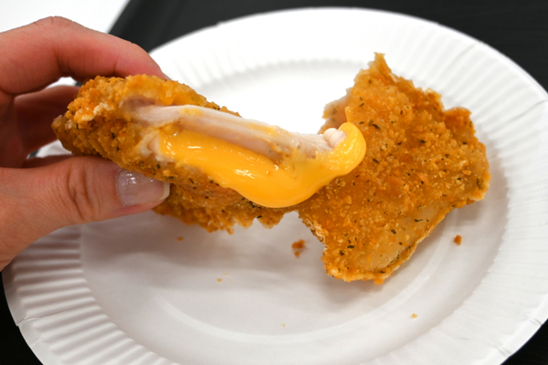 さらに、昨年も展開されたクリスピーチキンでもチーズ入り商品を販売します。昨年はクリームチーズ1種のみの使用でしたが、今年はチェダーチーズ、クリームチーズ、カマンベールチーズの3種を使用し、濃厚感を強化。商品名も「濃厚チーズinクリスピーチキン」に改めています(昨年は「クリームチーズソースinクリスピーチキン」)。