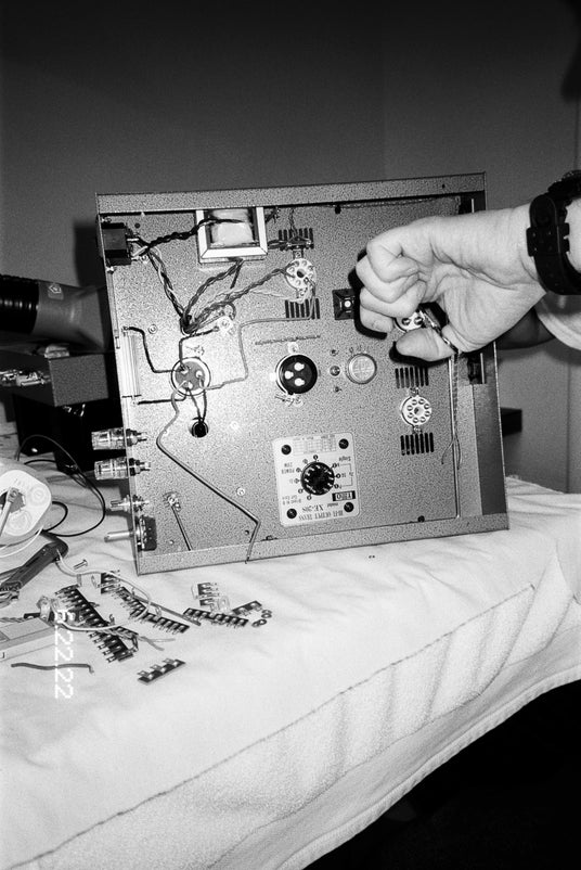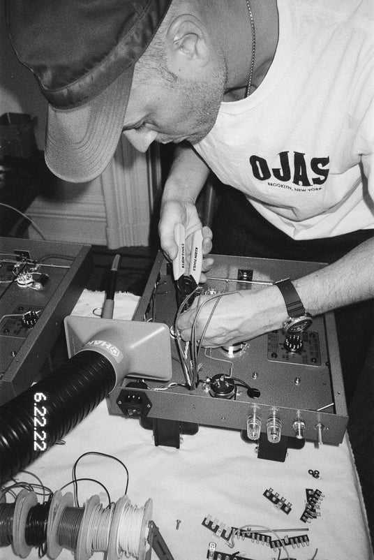 日本への頻繁な旅行を通じて独自の職人的オーディオ機器文化に出会い、ヴィンテージコンポーネント、DIY文化、日米のオーディオデザインの黄金時代からインスピレーションを得た大型の手作りシステムを生み出してきました。その作品は、SFMOMA、Cooper Hewitt Smithsonian Design Museumなどの美術機関で展示され、世界トップクラスのミュージシャンやプロデューサーのコレクションにも収蔵されています。