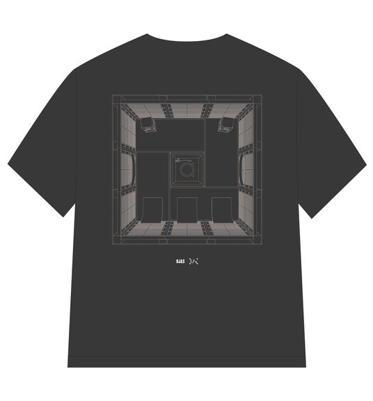 1階では、Devon Turnbull自らが空間構成を手掛けた、禅の精神に基づく静謐なリスニング体験を展開します。「最高の音楽環境とは何か」という問いに対し、本展では広大な空間の中に「サウンドハウス」と名付けられた、茶室のような独立した小建築を構築しました。「リアルコート」による緻密なドットパターンが施されたこの構造物は、空間内に設置された一つの彫刻作品としての存在感を放ちます。その内部は、本プロジェクトで開発されたアコースティックパネルが周囲を囲い込み、外部の喧騒を遮断した極めて純度の高い音響環境が創り出されています。空間の中央にはターンテーブルが鎮座し、その傍らには当社と共に開発した中型スピーカー〈Rokujo〉を1ペアのみ配置。来場者は設置された座椅子に身を委ね、空間に満ちる音の粒子と対峙します。本フロアの最大の特徴は、こうした体験を通じてDevon氏の思想を多角的に感受できる点にあります。会場内には、彼が自身の音響哲学を綴ってきたオーディオ専門誌『MJ無線と実験』の寄稿アーカイブを展示。バックナンバーの販売も行われ、来場者は「聞く」「読む」「座る」という一連の行為を通じて、彼が重層的に描き出す、深く瞑想的な世界観に触れることができます。