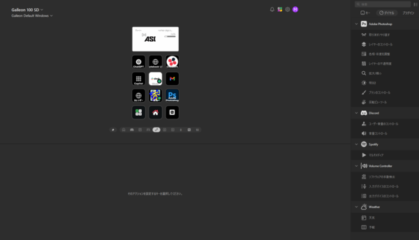ソフトウェアを開くと、ソフト上にGALLEON 100 SDと同じStream Deckの部分が表示されます。そこに右側から操作したい項目をドラッグ&ドロップし、やりたい操作を入れればすぐに使えるようになります。