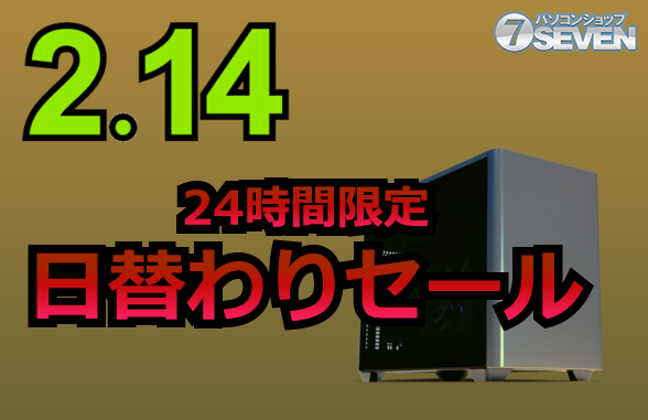 セブンアールジャパンが運営するパソコンショップSEVENは、2月14日に「2026/2/14 24時間限定セール」を開催する。この特別なセールでは、最新のゲーミングPCやデスクトップPCが最大90,000円オフで購入可能だ。