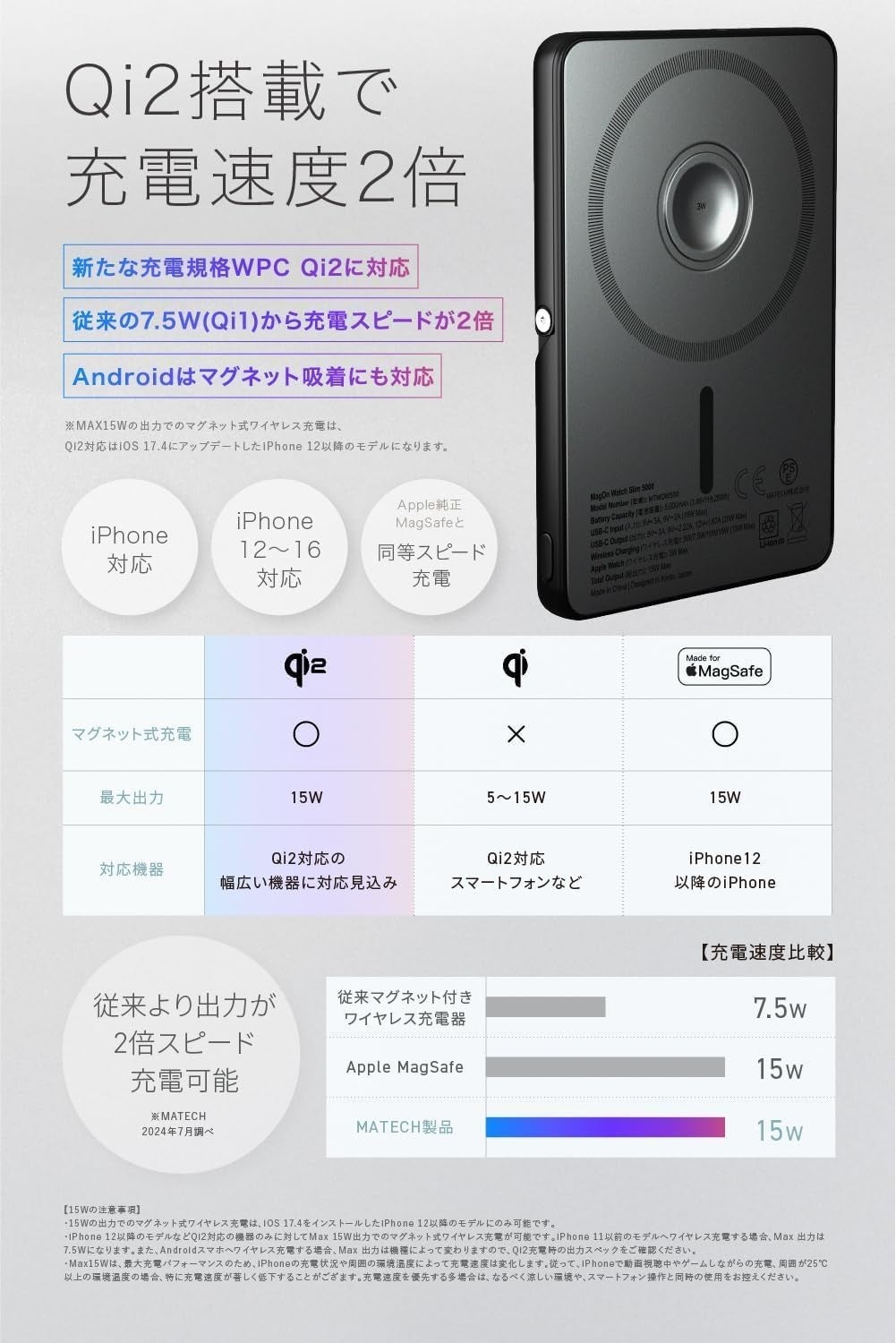 ◆ 【Qi2対応で充電速度2倍】