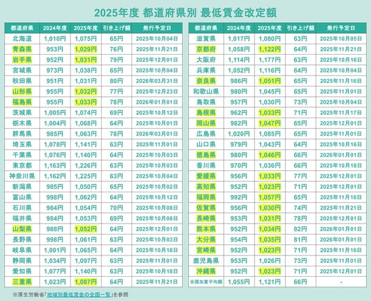 ※最低賃金の改定については厚生労働省「地域別最低賃金の全国一覧」を参照