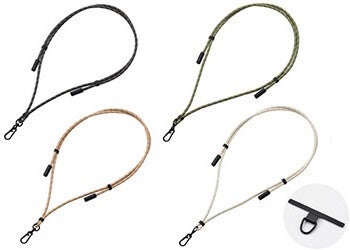 ショルダーストラップがUSB Type-C(TM)(USB-C(TM))ポート対応の充電ケーブルに早変わりする“2in1”仕様のストラップです。直径約6mmの丸ひもを採用し、日常使いでも肩が疲れにくい軽量スリム設計にしました。スマートフォンケースにストラップホールがない場合でも、高耐久のステンレス製シートを挟み込むことで使用できます。ストラップの長さは最大1.5mまで調整可能です。ストラップの両端にはキャップ付きのUSB Type-C(TM)コネクターを備え、AC充電器やモバイルバッテリーと組み合わせることでスマートフォンを充電できます(最大60W・20V/3A)。カラーは服装やシーンを選ばず使えるアースカラーの4色をご用意しました。