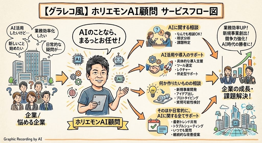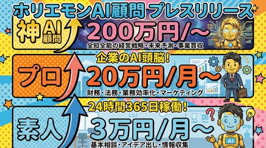 ホリエモンAI学校株式会社(本社:東京都新宿区、代表取締役CEO:荒木 賢二郎、以下「ホリエモンAI学校」)は、AI顧問サービスの提供開始を発表いたします。
