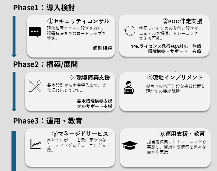 検証用ライセンスの発行に加え、設定マニュアルを提供し、PoC実施をスムーズに支援します。