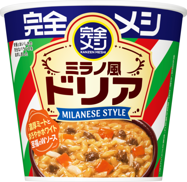 「完全メシ」は、ビタミン・ミネラルなど33種類の栄養素とおいしさのバランスを追求したシリーズで、今回、ファミリーレストランなどで幅広い世代に親しまれている"ミラノ風ドリア”を、ラインナップに加えます。