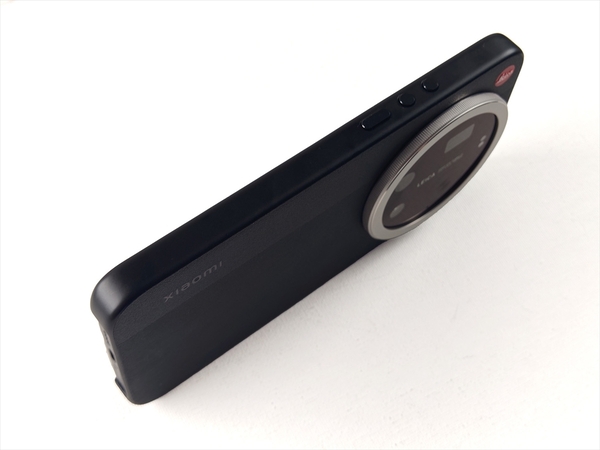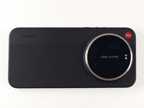 購入したモデルはブラックで、背面は上側にXiaomiのロゴ、カメラ右上にライカロゴが配置されている。下側は若干シボをつけた仕上げで滑り止め効果とカメラ風の外観としている。