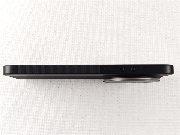 本体右側面のボタンは、ボリュームが「+」と「-」に独立しており、電源ボタンと合わせて3つのボタンが並ぶ。また側面の大半にはスリットを入れたローレット処理が施されており、滑り止め効果も高めている。なお、カメラ用のシャッターボタンは搭載されていない。