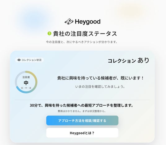 - - これまでのスカウトは「掛け捨て型」でしたが、Heygoodでは採用広報(note/SNS等)やイベントからの流入を可視化し、自社に興味を持つ層をプールすることで、中長期的な採用資産を蓄積できます。