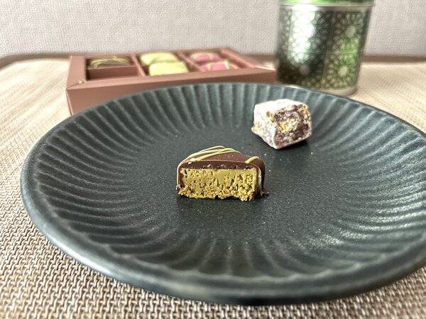 ドバイチョコのポイントは、濃厚なトルコ産ピスタチオペーストと、サクサク食感が特長の極細麺「カダユフ」をフィリングに使っているところ。実際にひと口味わってみると、濃厚でなめらかなピスタチオの風味が広がり、繊細なクランチのようなカダユフのザクザク感が楽しめます。これは美味しすぎる! また買おう!