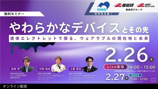 【超特別企画】AIST×NIMS Live配信ウェビナー やわらかなデバイスとその先【2/26Live・2/27録画配信】