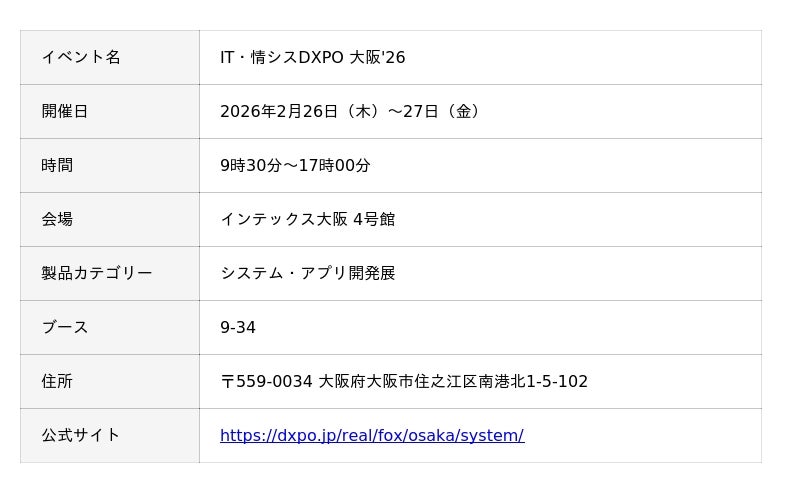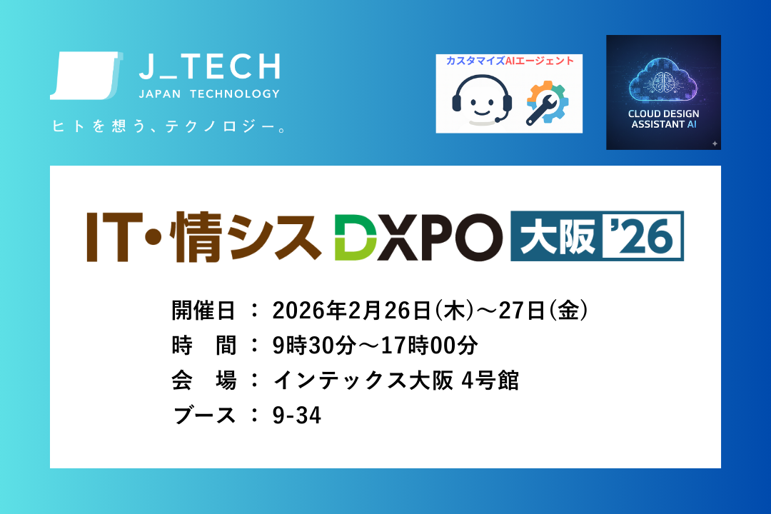 ソフトウェアを通して様々な情報サービス事業を展開する株式会社ジェイテック(以下「ジェイテック」)は、2月26日(木)~27日(金)にインテックス大阪で開催されるDXの展示会、「IT・情シスDXPO 大阪'26」に出展することをお知らせいたします。