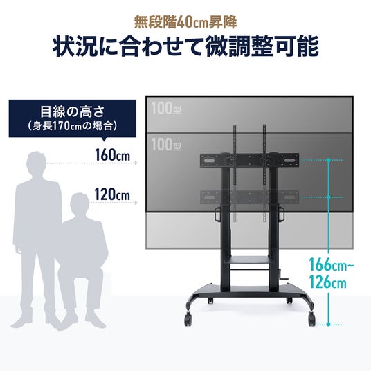 テレビスタンド 100型 100インチ対応 上下昇降 手動 ディスプレイスタンド キャスター付 ハイタイプ